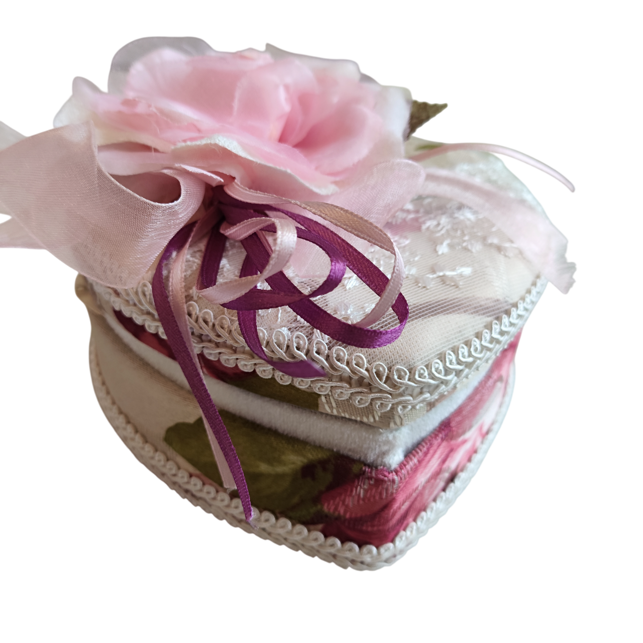 A Caixinha Porta-Joias Four Star em formato de coração une estética decorativa e funcionalidade técnica. Desenvolvida com estrutura rígida e revestimento em tecido texturizado floral, este modelo é ideal para a organização segura de pequenas joias e bijuterias, contando com um espelho interno para facilitar o uso diário.